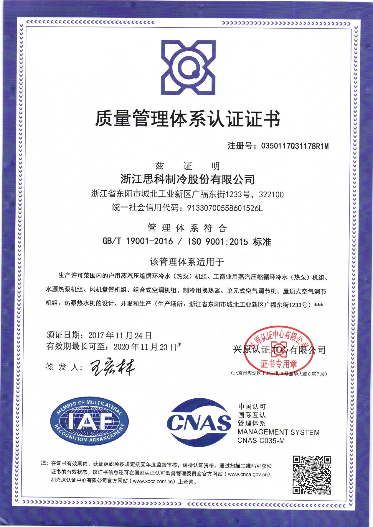 浙江思科制冷股份有限公司,地处浙江省东阳市广福东街 1233 号,占地 150 亩,建筑面积 7.5 万平方米。公司衍生于台湾国祥,是浙中规模最大的中央空调制造商,是台湾“制冷大王”陈和贵先生在大陆精心培育的品牌企业。拥有“台湾国祥”半个多世纪的创业真谛,拥有一流的技术和管理人才,拥有行业领先的机械设备,铸就思科制冷的产品质量和性能处于同行业领先水平。