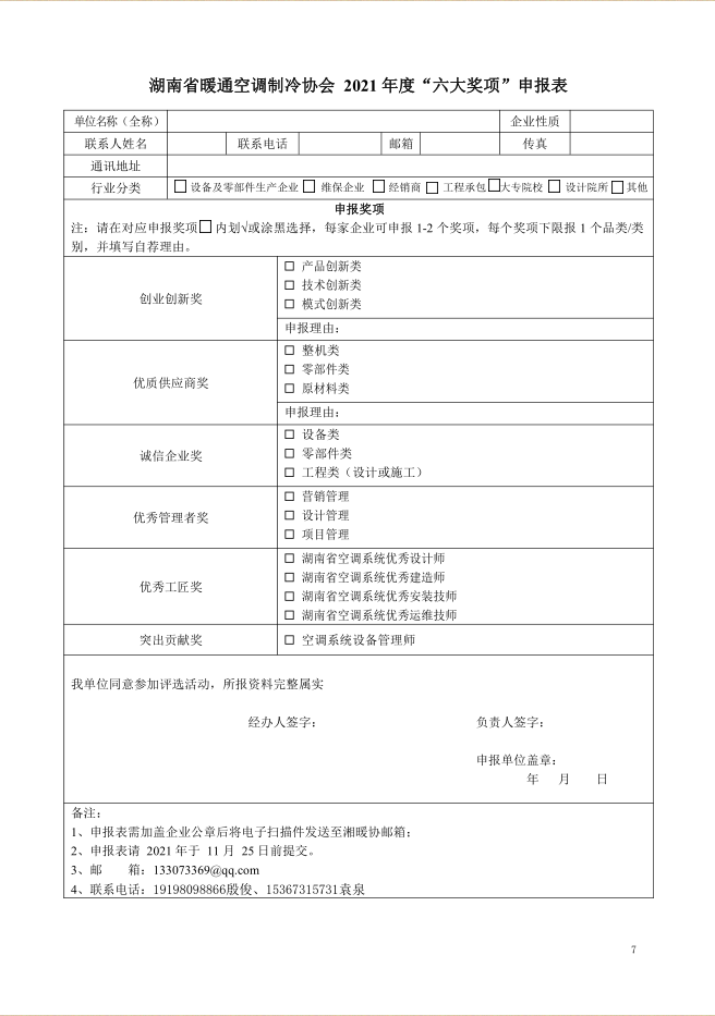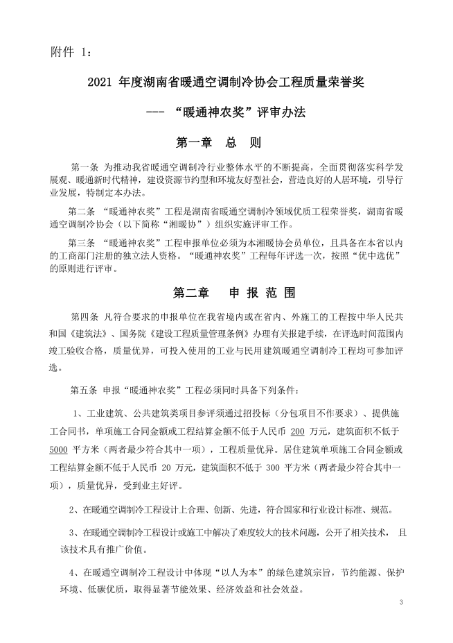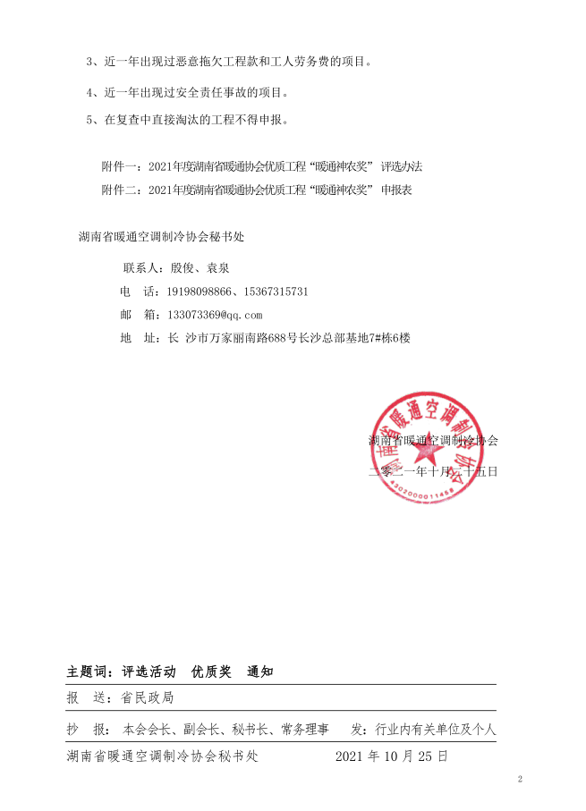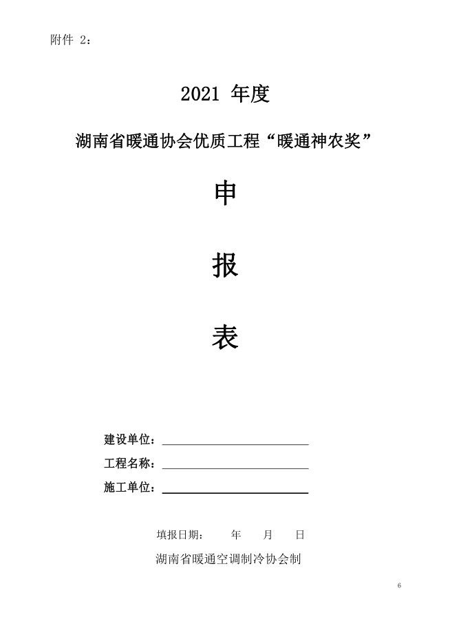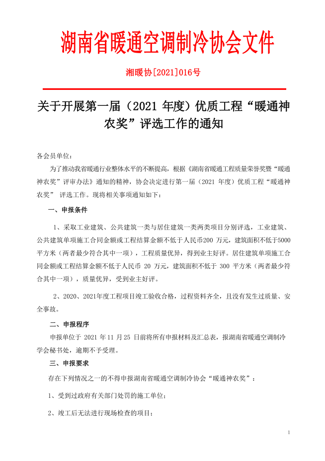 2021年湘暖协优质工程“暖通神农奖”及“六大奖项”评选通知