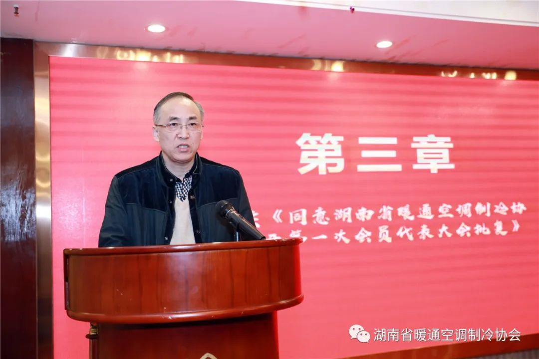 湖南省社会组织管理局龙吉士处长向大会宣读了《同意湖南省暖通空调制冷协会召开第一次会员代表大会批复》。龙处长全程见证了本次大会,并代表湖南省社会组织管理局对大会的成功召开表示充分肯定。