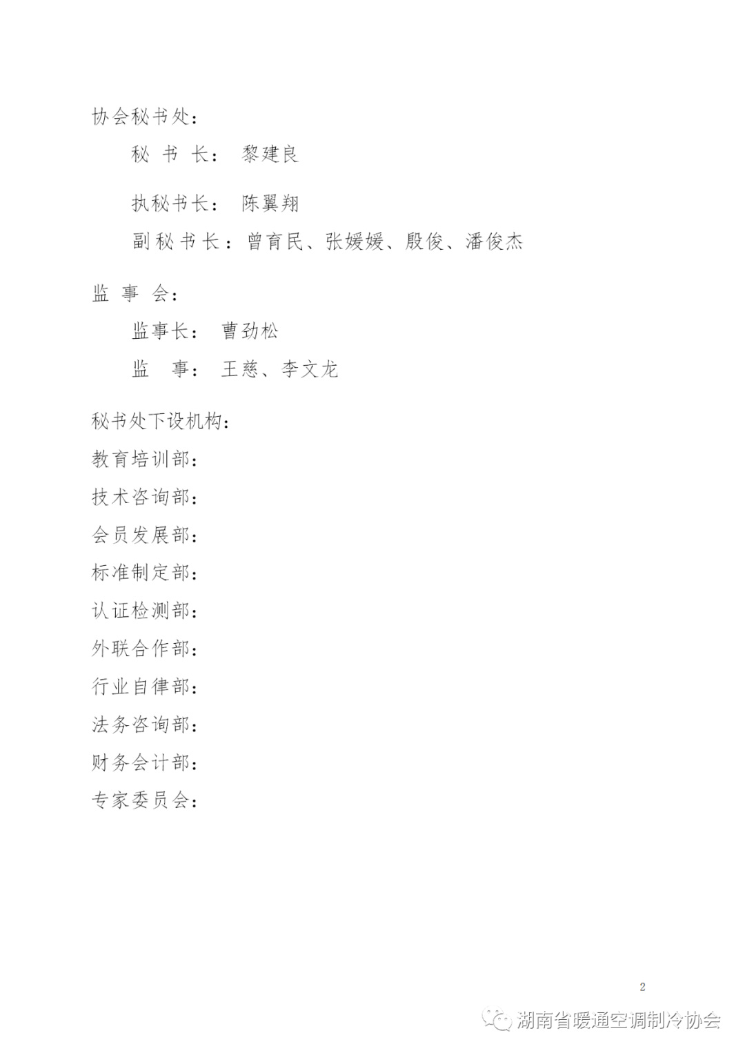 会议按照法定程序议表决通过了《湖南省暖通空调制冷协会章程》,表决通过了大会执行机构以及会费收取标准,选举产生了第一届协会会长、副会长、秘书长、监事会、常务理事。