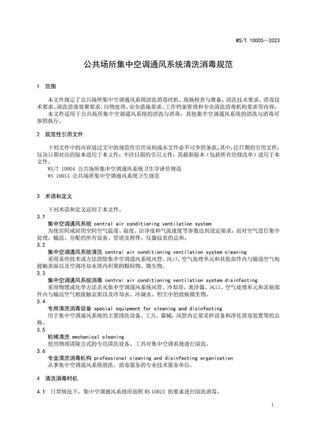 WST10005-2023《公共场所集中空调通风系统清洗消毒规范》